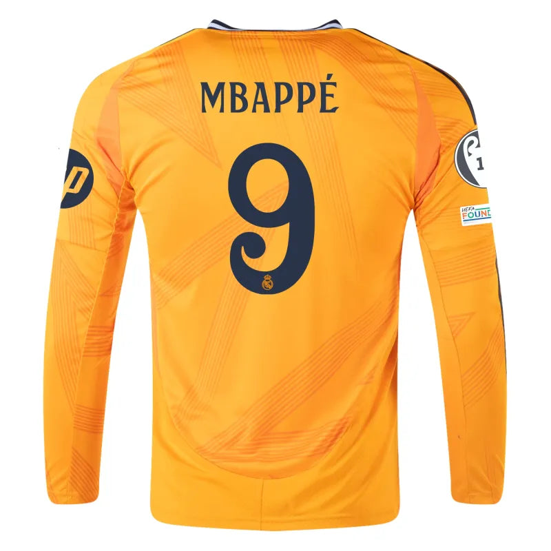 Camisa Real Madrid Mbappe Manga Larga con Parchos UEFA Champions League 2024/2025 Visita